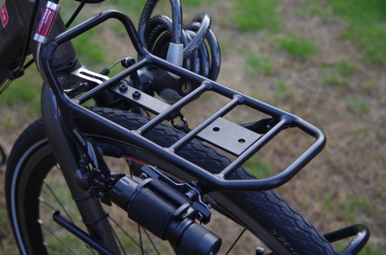 13.10.01追記: 6kgほどの荷物を積んで数日走ったところ中央の取付金具が曲がって、フロントブレーキと干渉するようになりました。現在は金具を交換し補強を施して使用しています。