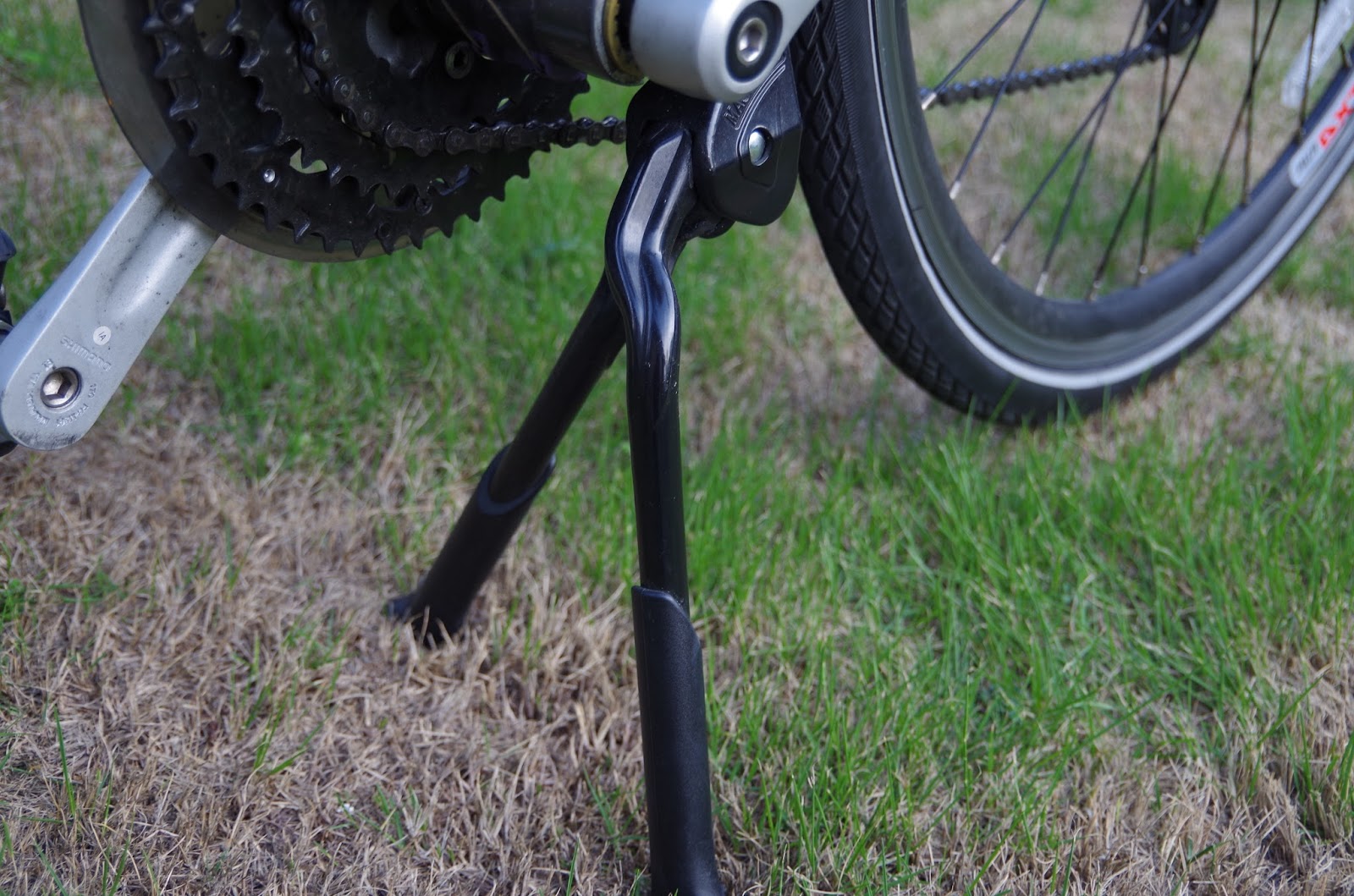 良いところは非常に安定していることと、オルディナS7に装備した場合スタンドを立てたままペダルを回せるのでメンテスタンドとしても使えること。スタンドを開いた状態でペダルに干渉しない+前輪寄りの重心なのでとても使いやすいです。前輪のメンテはリアキャリアに工具を置いてやればOKという絶妙なバランス。