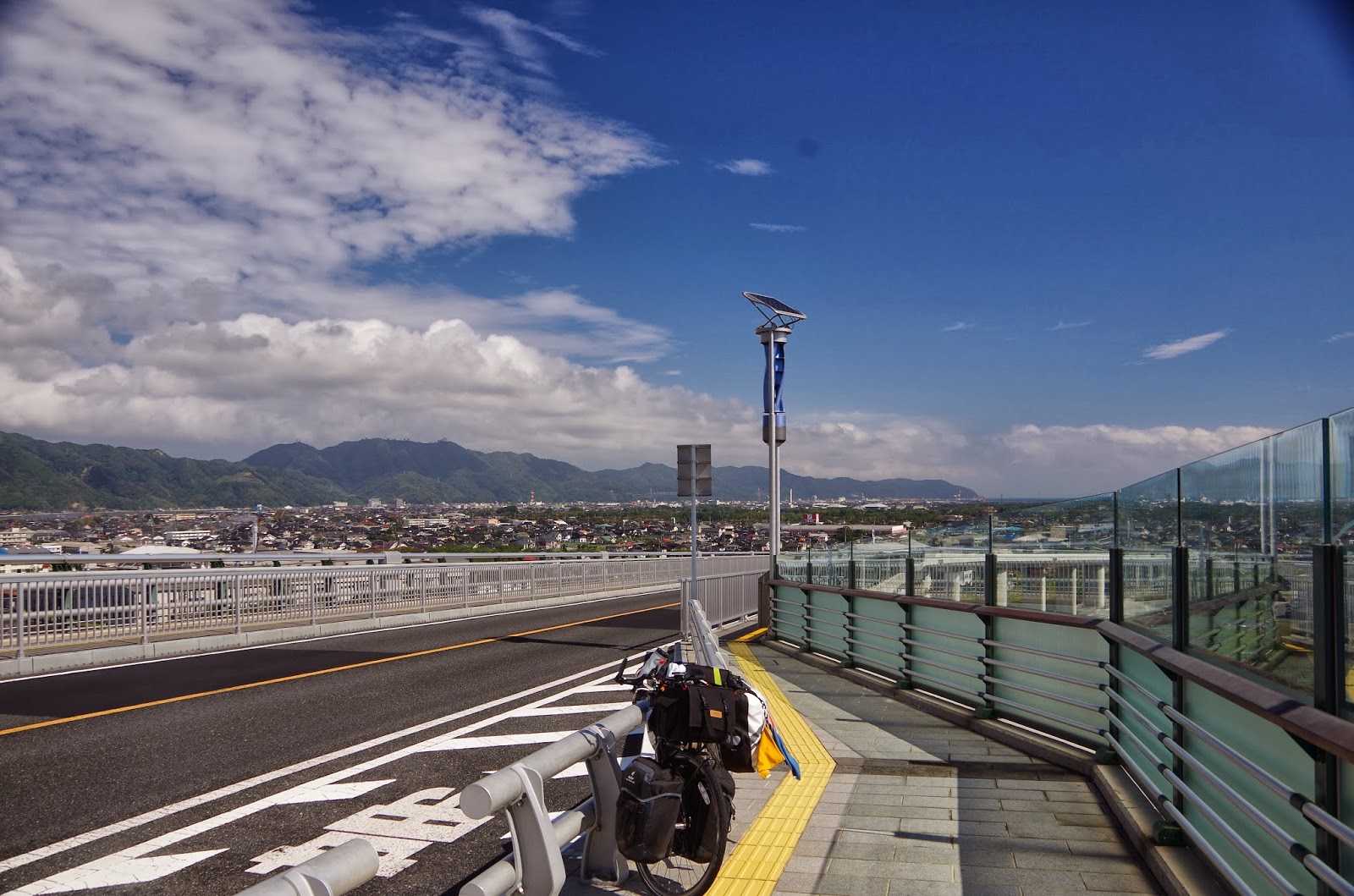 ちなみにこの橋は歩道の幅が狭く勾配がキツイので自転車を押して通行することになります。