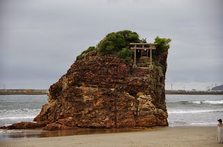 弁天島。昔は水に浸かっていたが砂浜が広がって地続きになってる