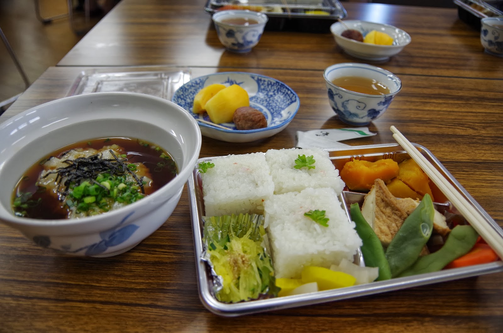 1000円で買った食券と引き換えに葛粥とお弁当が貰えます。