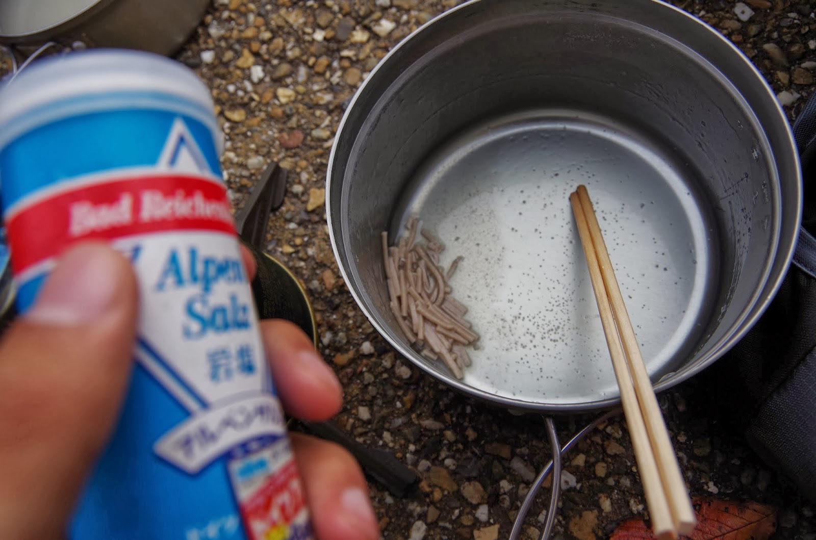 茹で汁の中に残った蕎麦は捨てるとゴミになるので塩をかけて食べます。
