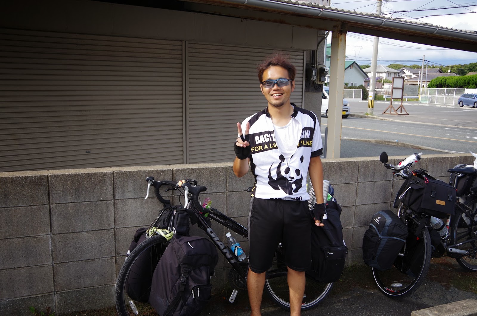 宗像へ向かう途中で自転車で日本一周中の廣田さんに遭遇