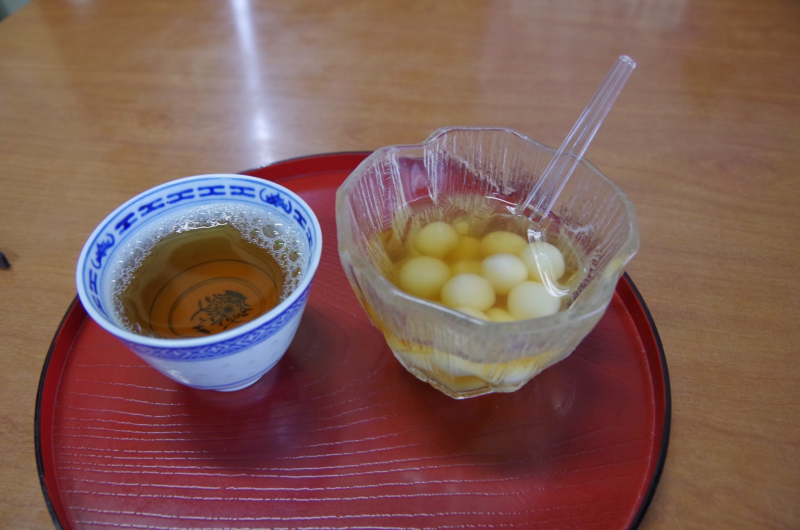 冷たい水と黒糖や和三盆で作った上品な甘さの蜜で食べる白玉だんごです。