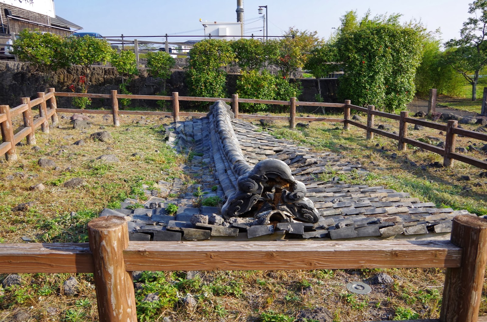 手前の屋根の漆喰がなんかすごい。見る角度では真っ白に見える?
