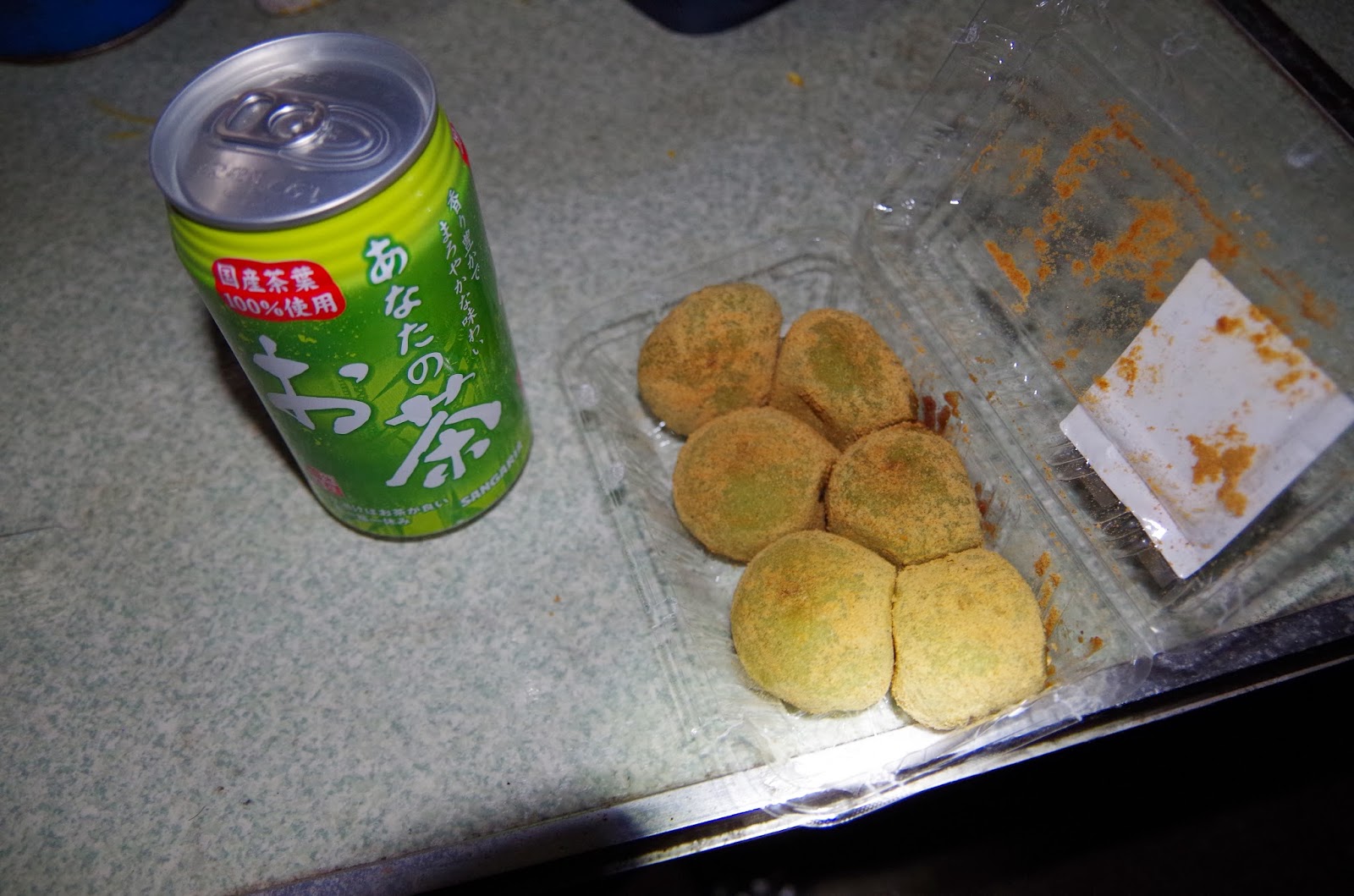 晩飯の後は途中で買った120円のヨモギ団子。