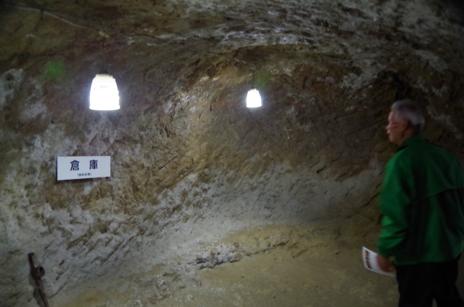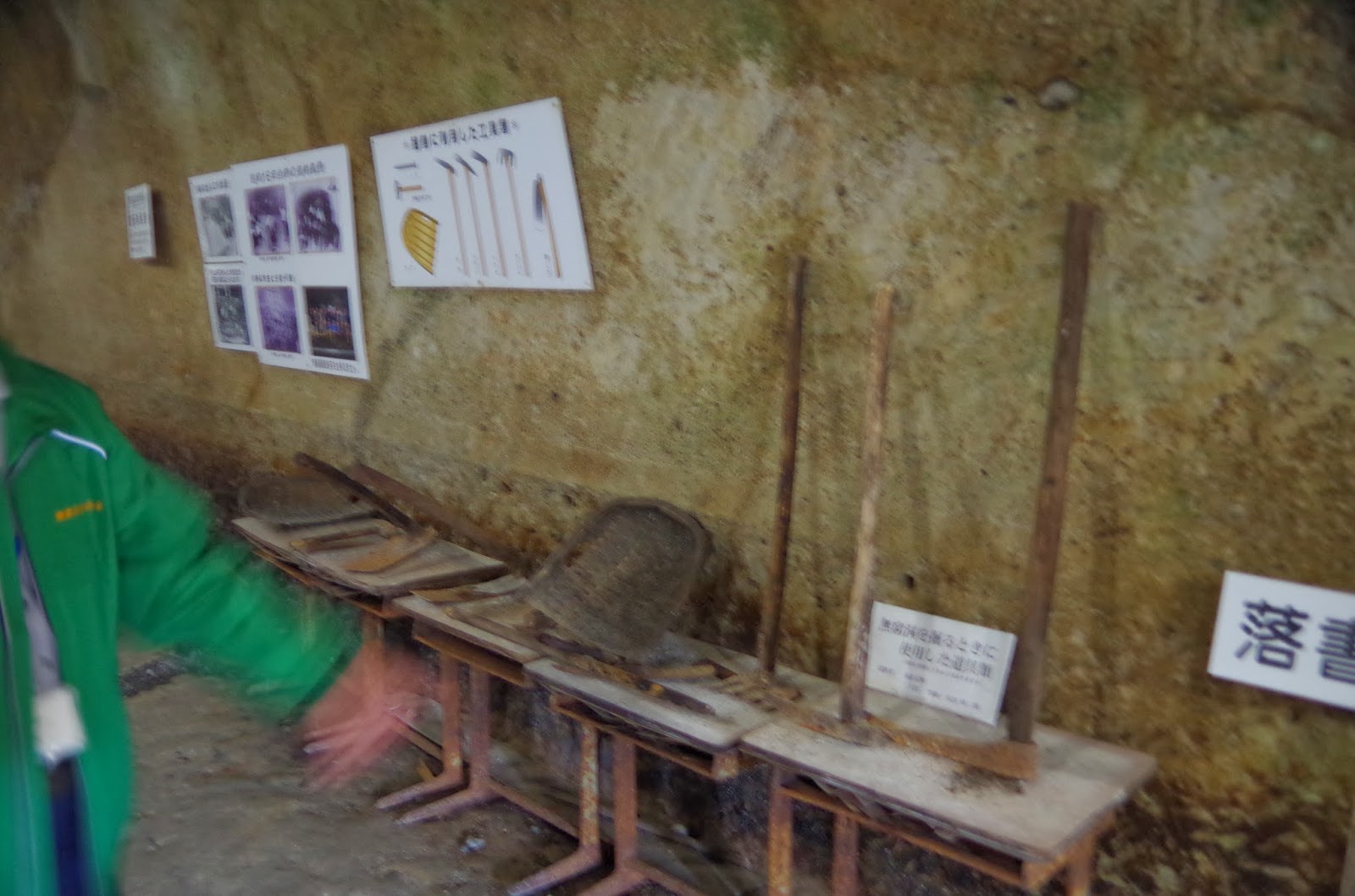 戦争が長引いた時にこの中で授業ができるように教壇も掘ってあります。