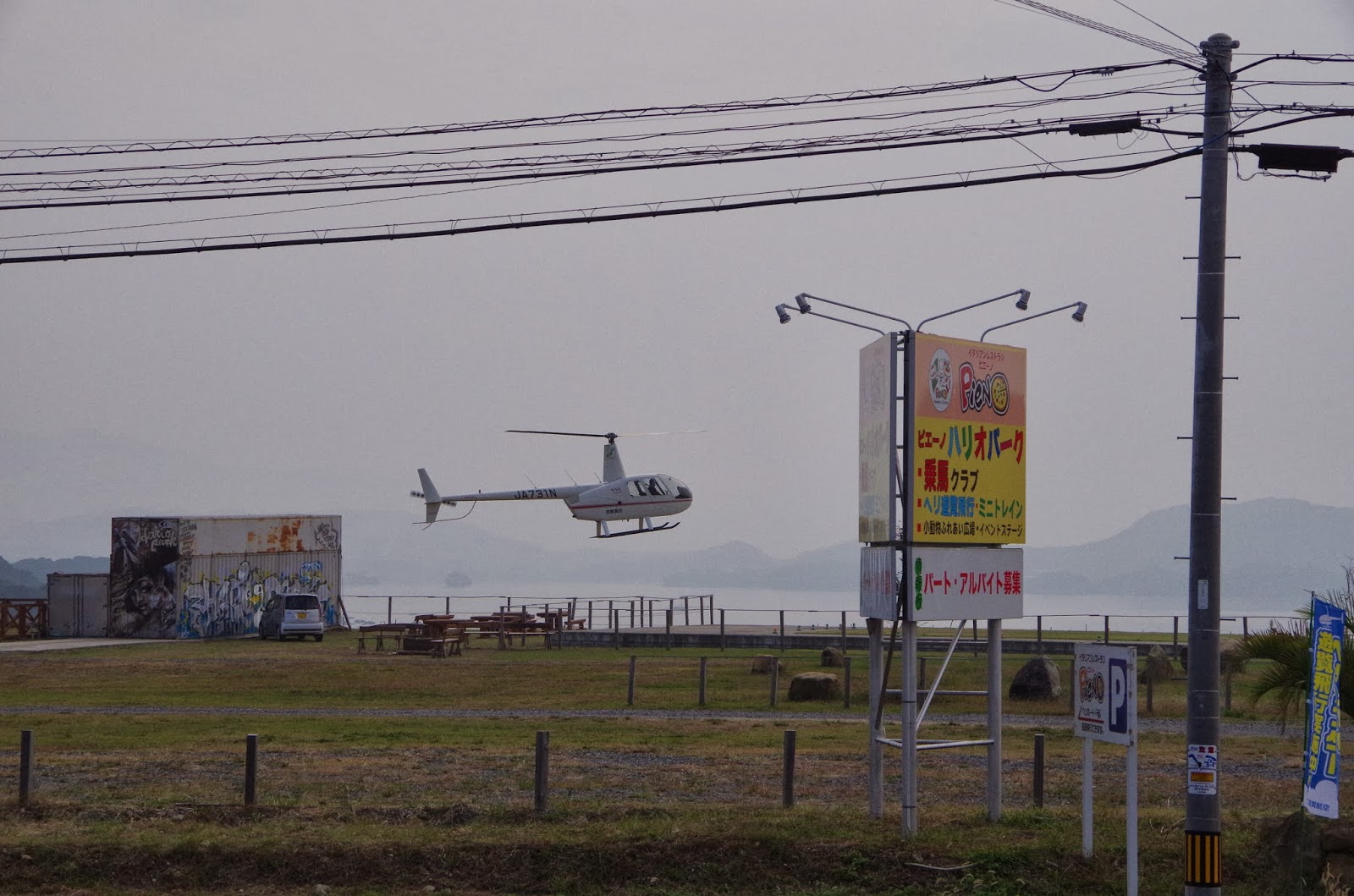 ライダーハウスの目の前は遊覧ヘリの離発着場。