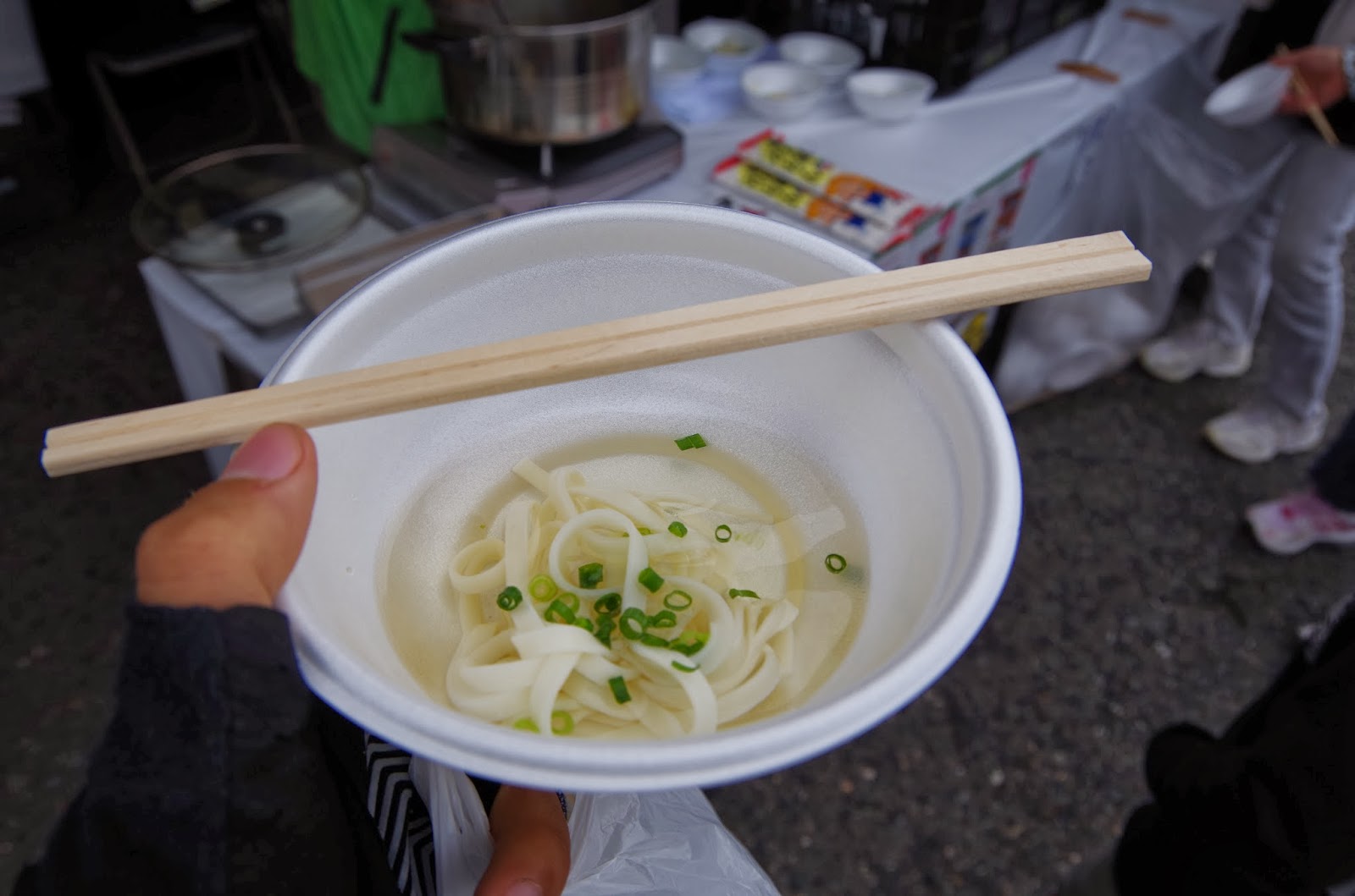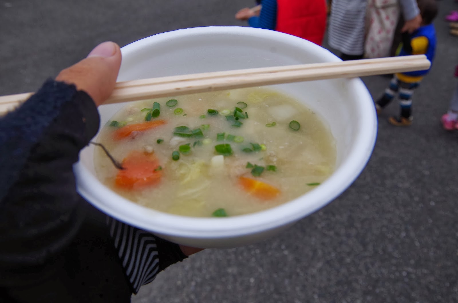 無料配布の豚汁。200杯限定配布で整理券196番のギリギリ滑り込みGET!