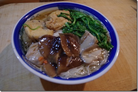しいたけとがんもどきは調味料で煮込み、菊菜はさっとゆがいて完成
