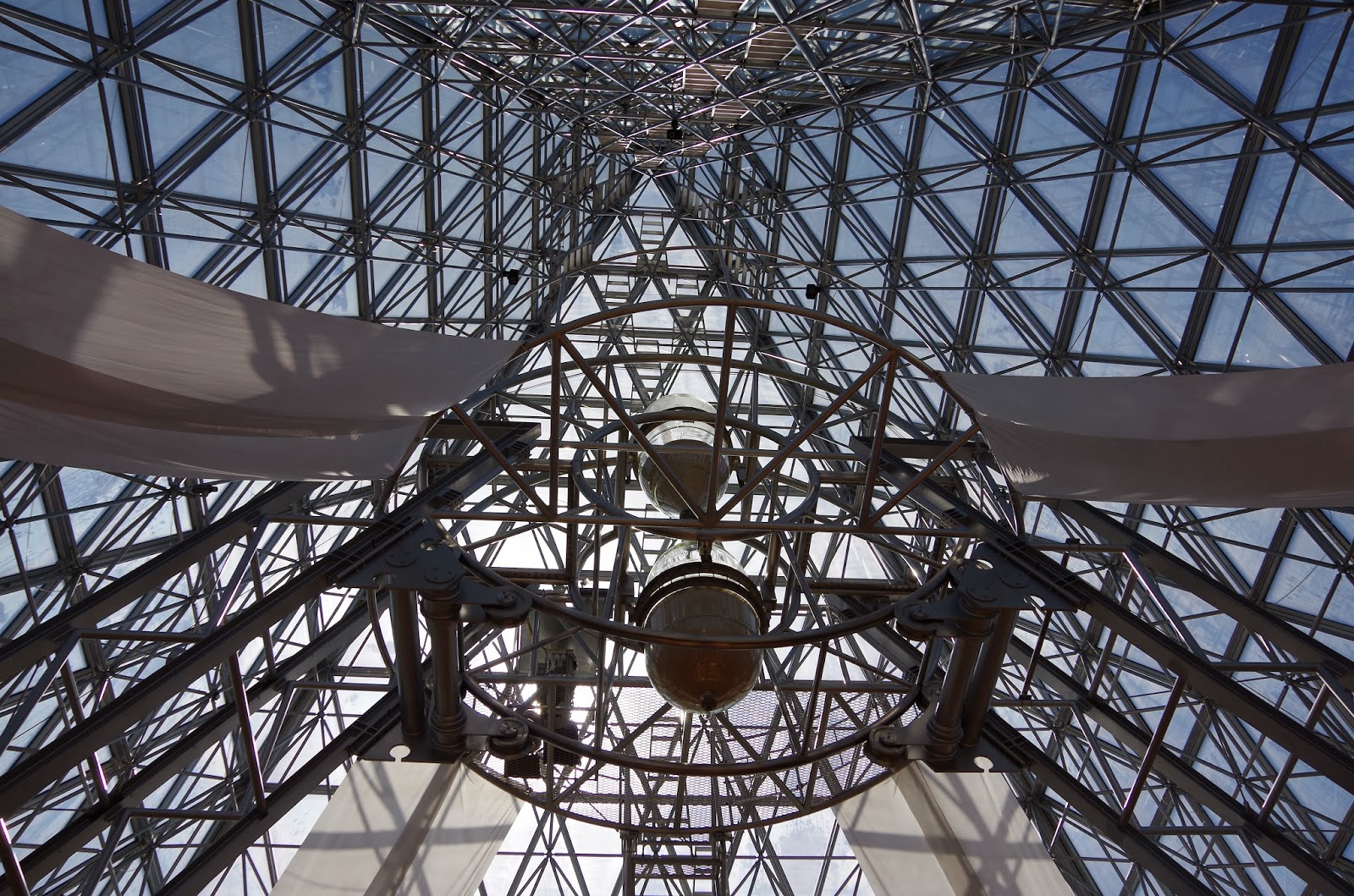 ピラミッド状の建物の中に入ると、上のほうに巨大な砂時計がぶら下がってます。